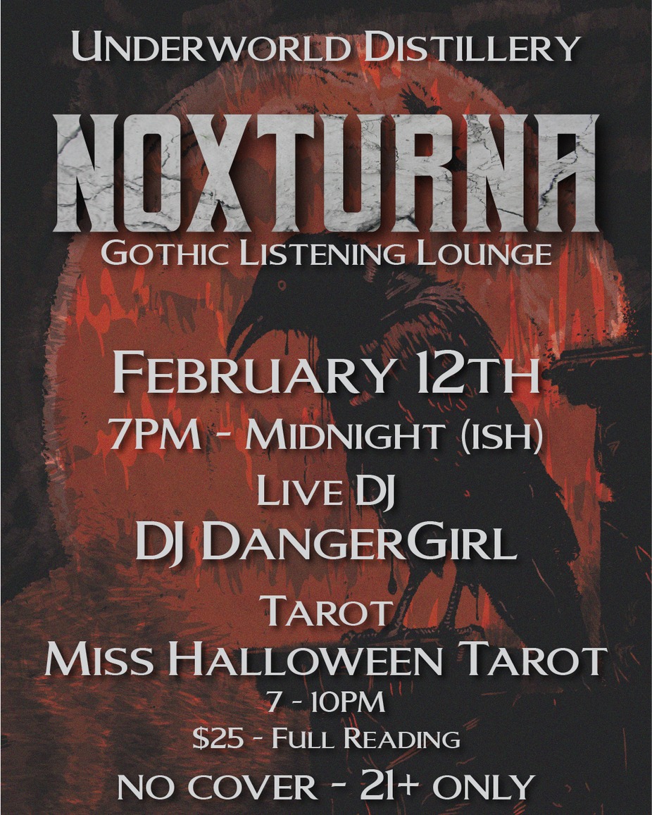 Step into the dark. Noxturna is a gothic listening lounge night drenched in atmosphere, shadow, and sound. DJ DangerGirl will be spinning a moody, immersive mix all night while the space glows low and electric.