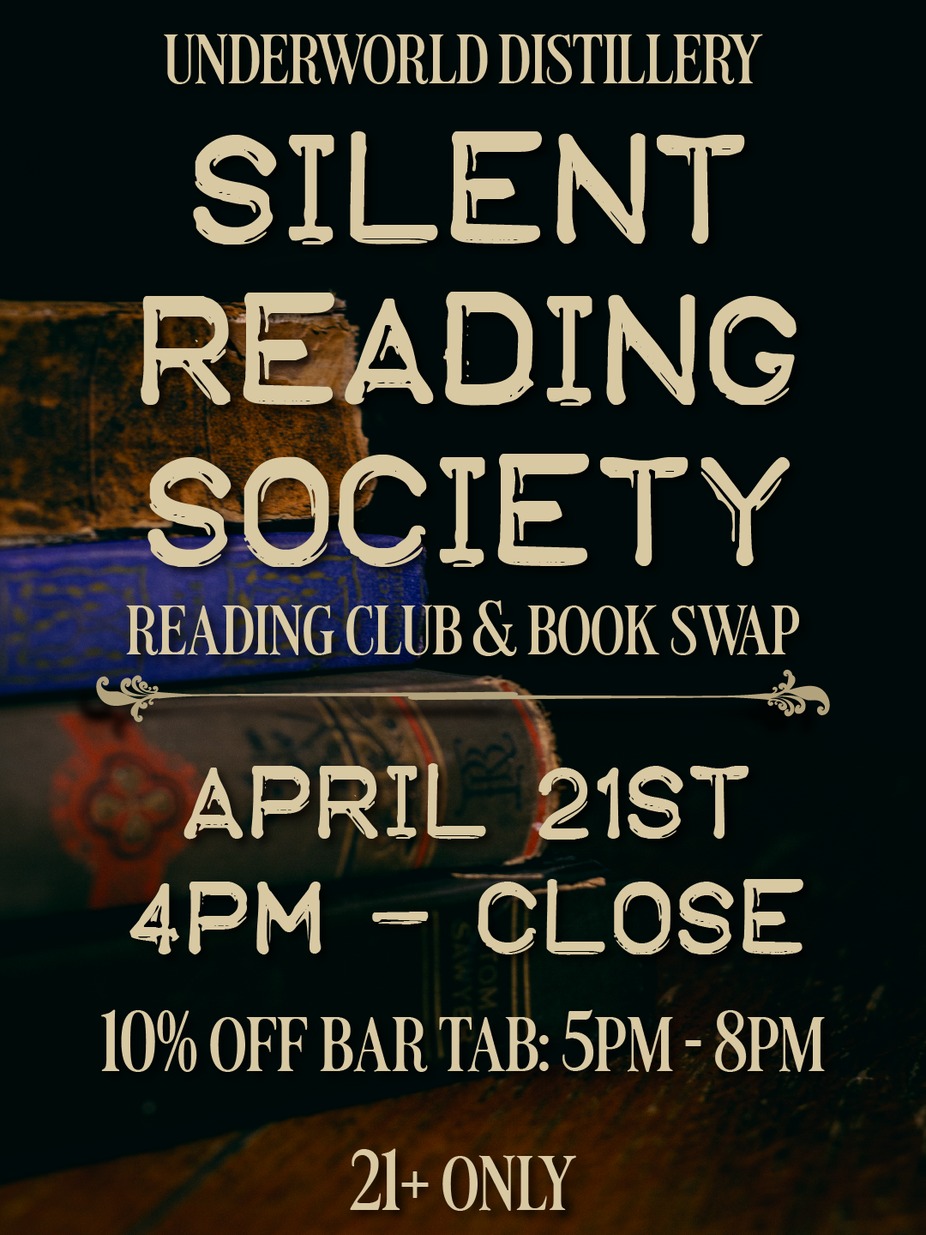 Snuggle up for great drinks, good vibes, and fantastic stories! Here in the Underworld, we are bringing back Silent Reading Society on Tuesday April 21st! Gather your book club, reading buddies, or just yourself and come discuss all things books! Feeling adventurous? Swap books with friends and/or strangers! From 5PM to 8PM, you can get 10% off of your bar tab, but the event is all night. Doors at 4PM; 21+ only.