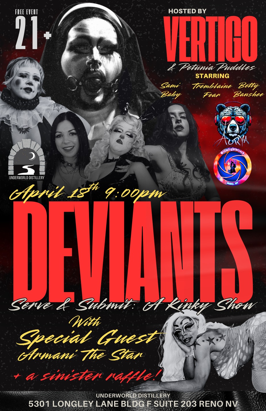 Step into the shadows and surrender to your darker desires at DEVIANTS… a night of kink, chaos, and intoxicating performance.