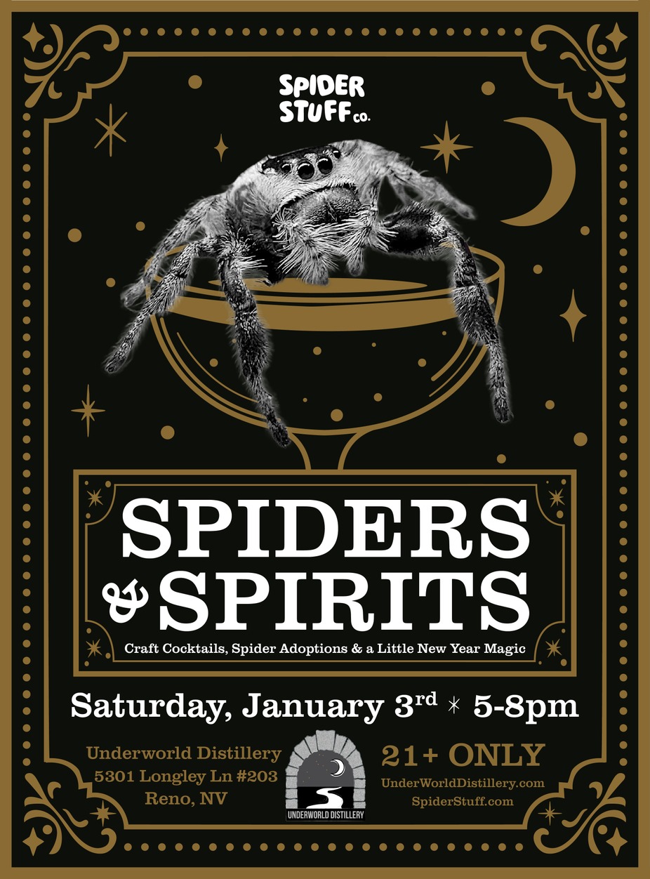New year, new experiences! We are so thrilled to have Spider Stuff Co. join us for the first time here in the Underworld! Learn about these sweet little jumpy bois, overcome your fears, and maybe even adopt your own/create a habitat! From 5-8 PM, these lil guys will be stealing the show! 21+ only. Doors @ 4.