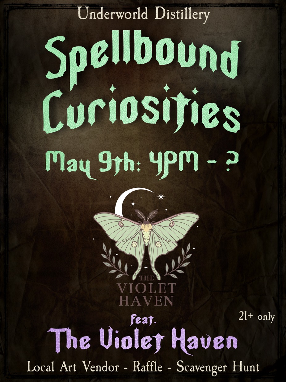 A night of curiosities and great drinks? Yes, please! Join us on May 9th from 4PM until an unknown time to peruse the wares of the lovely and talented @theviolethaven, a local artist that creates a variety of delightful art pieces that you’ll be dying to put in your home, office, or wherever!
